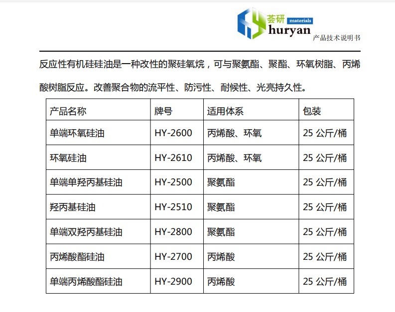 單端環氧硅油是一種改性的聚硅氧烷,具有化學反應性,可以和丙烯酸酯樹脂反應,提高UV涂料的疏水性,柔軟性。分子量:1000或者2000 兩種規格。